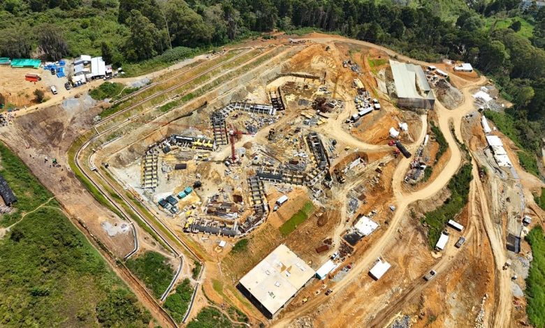 La construcción registra un avance del 9% y actualmente se ejecutan labores de excavación de plataformas, construcción de la vía de acceso, pilas estructurales, muros de contención, estructuras de pabellones y obras hidráulicas.