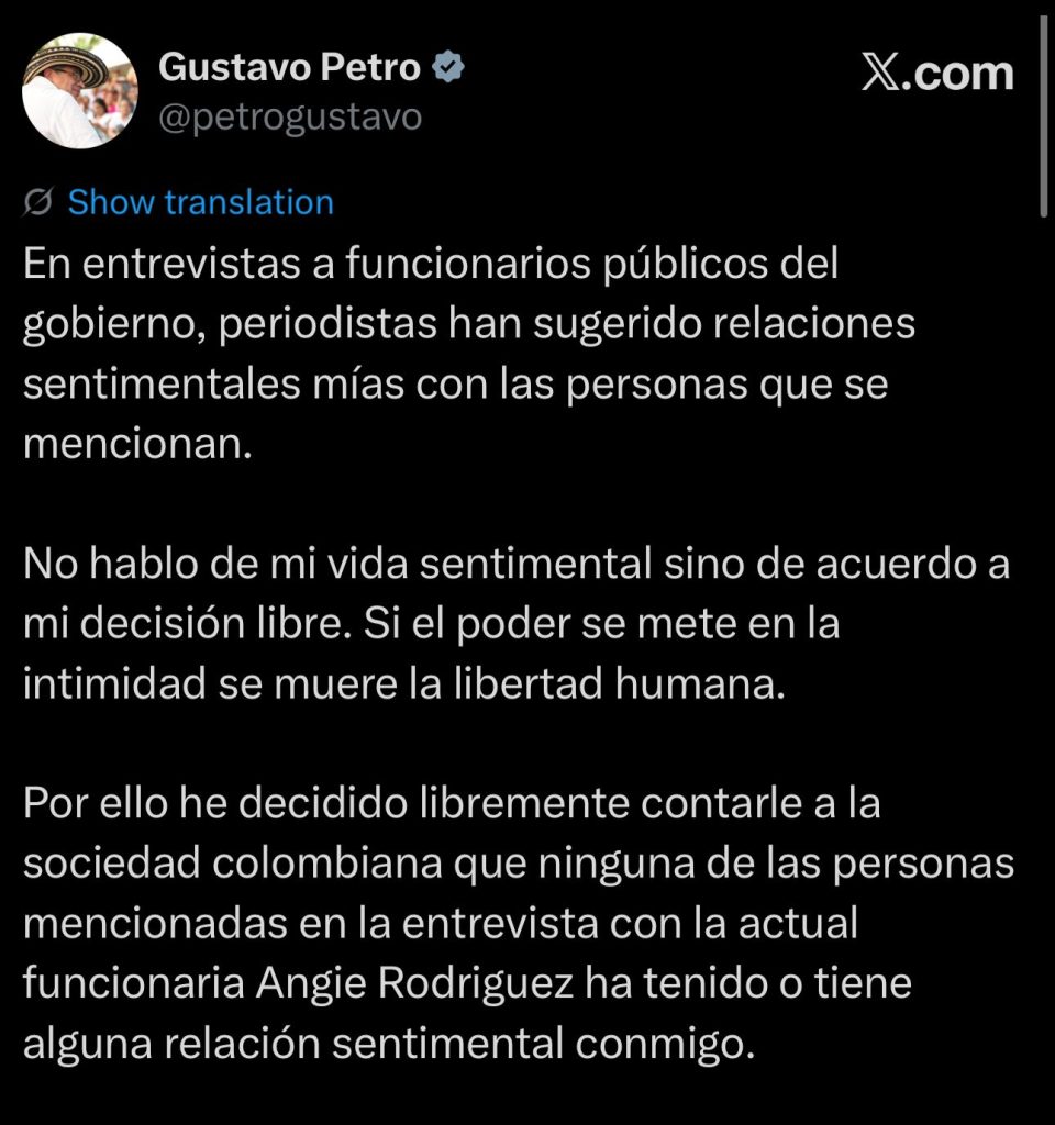 Mientras crecen las tensiones internas y las denuncias entre altos funcionarios, el presidente Gustavo Petro reaccionó en su cuenta de X, pero lo hizo enfocándose en su vida personal y no en el fondo de la crisis.