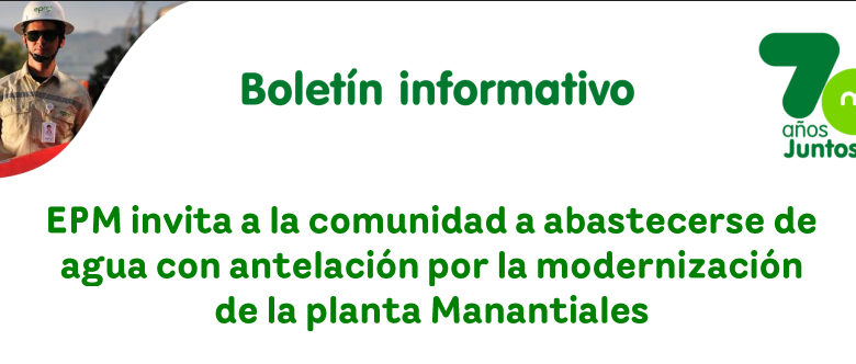 EPM pide a la comunidad abastecerse de agua por trabajos en la planta Manantiales